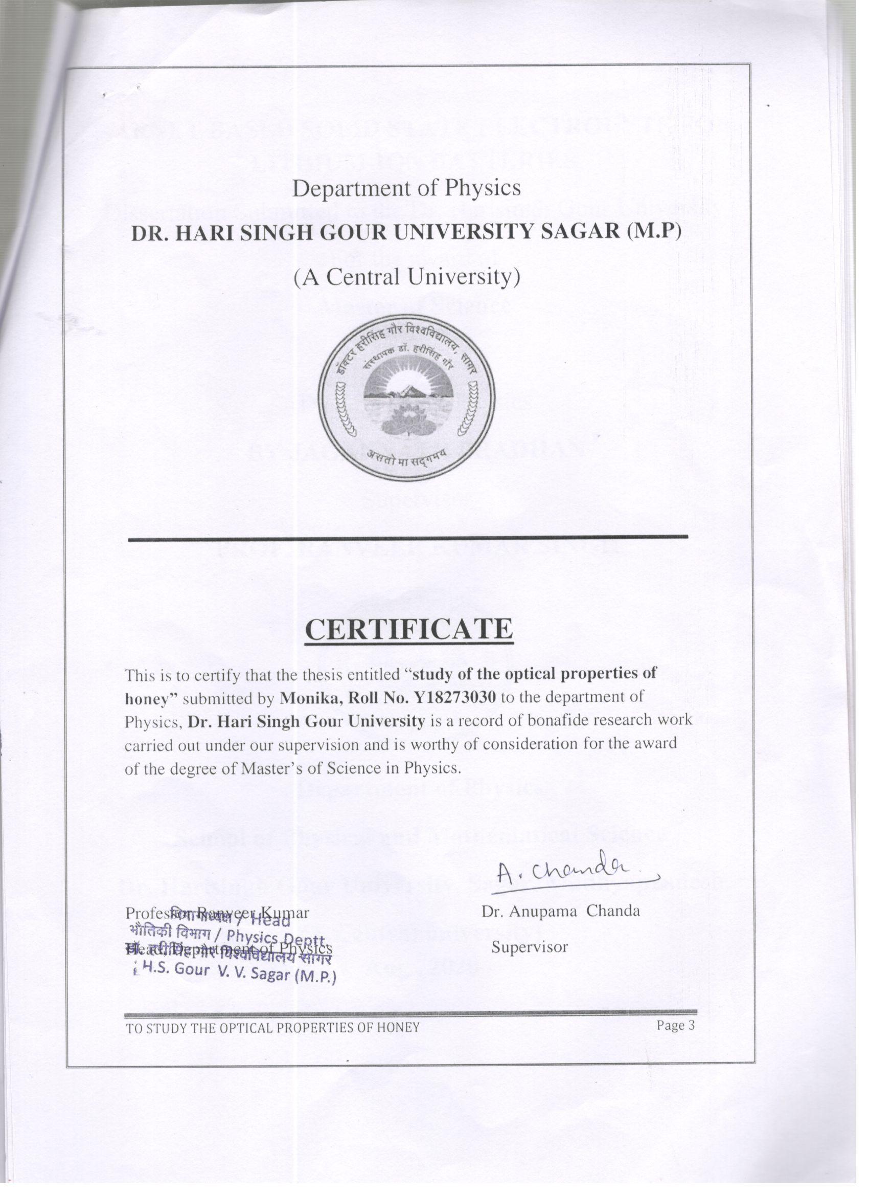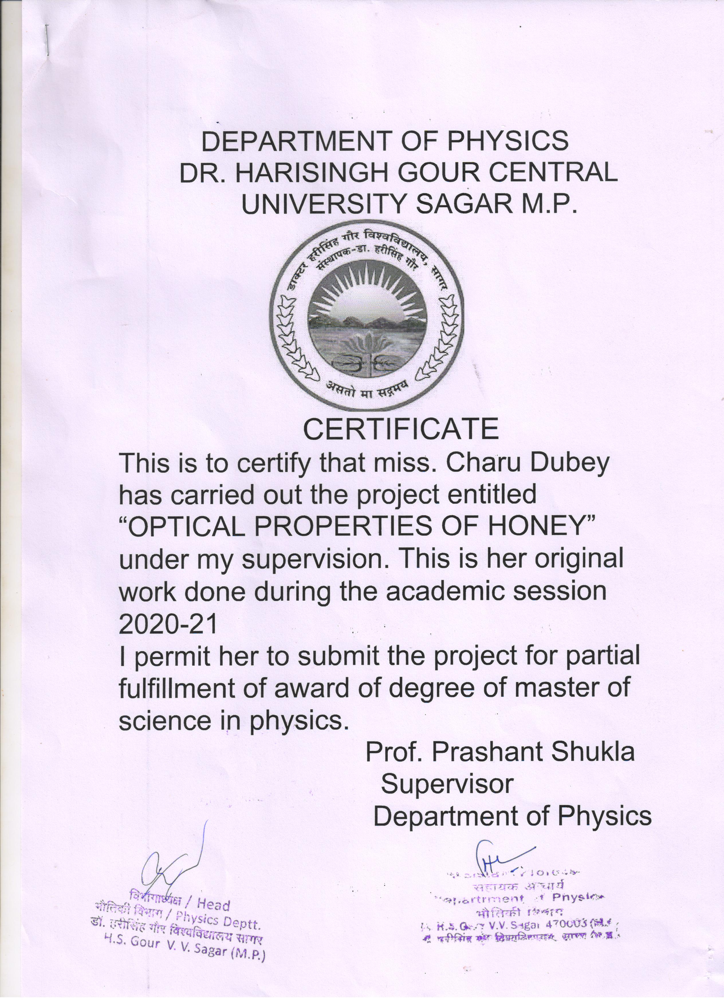 | 5. | Y18273030 | Monika | Study of the optical properties of Honey |