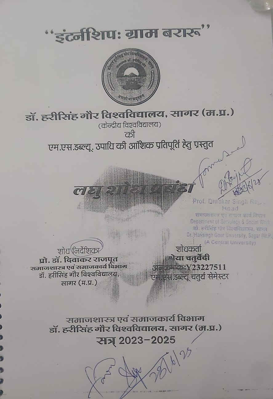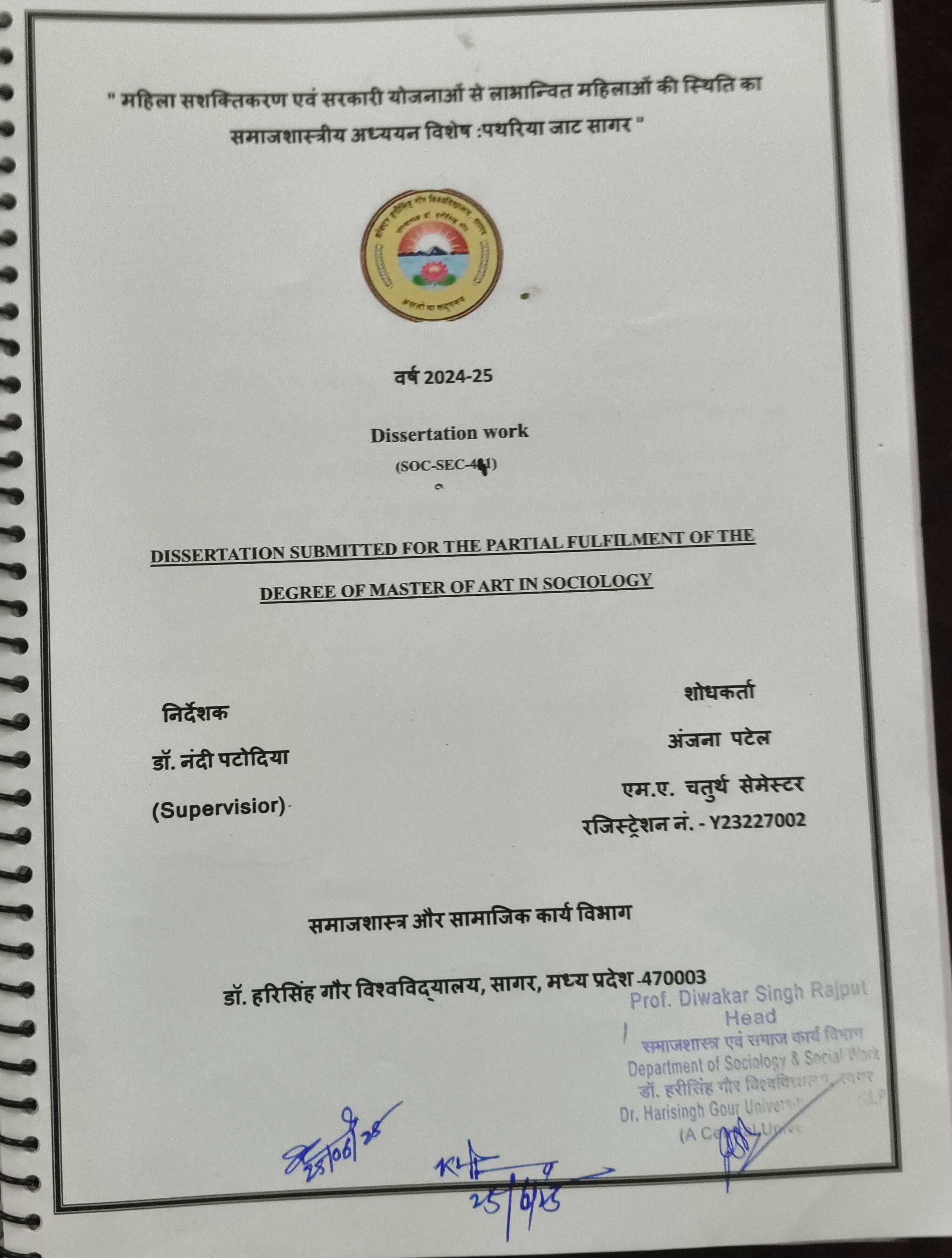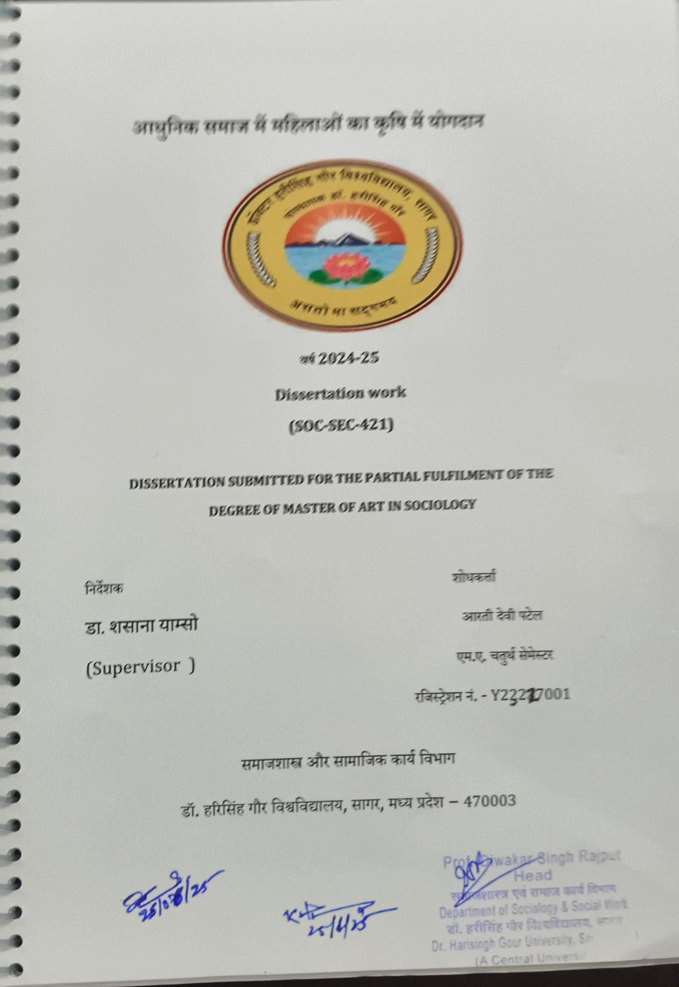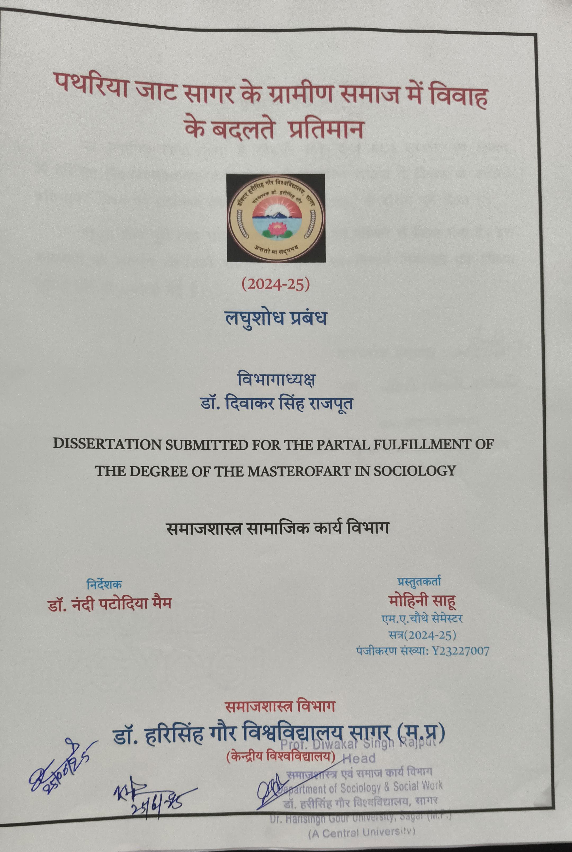 | 7 | Akrati Kanojia | MSW | Dr. Harisingh Gour V V Sagar | PH.D. Sociology |