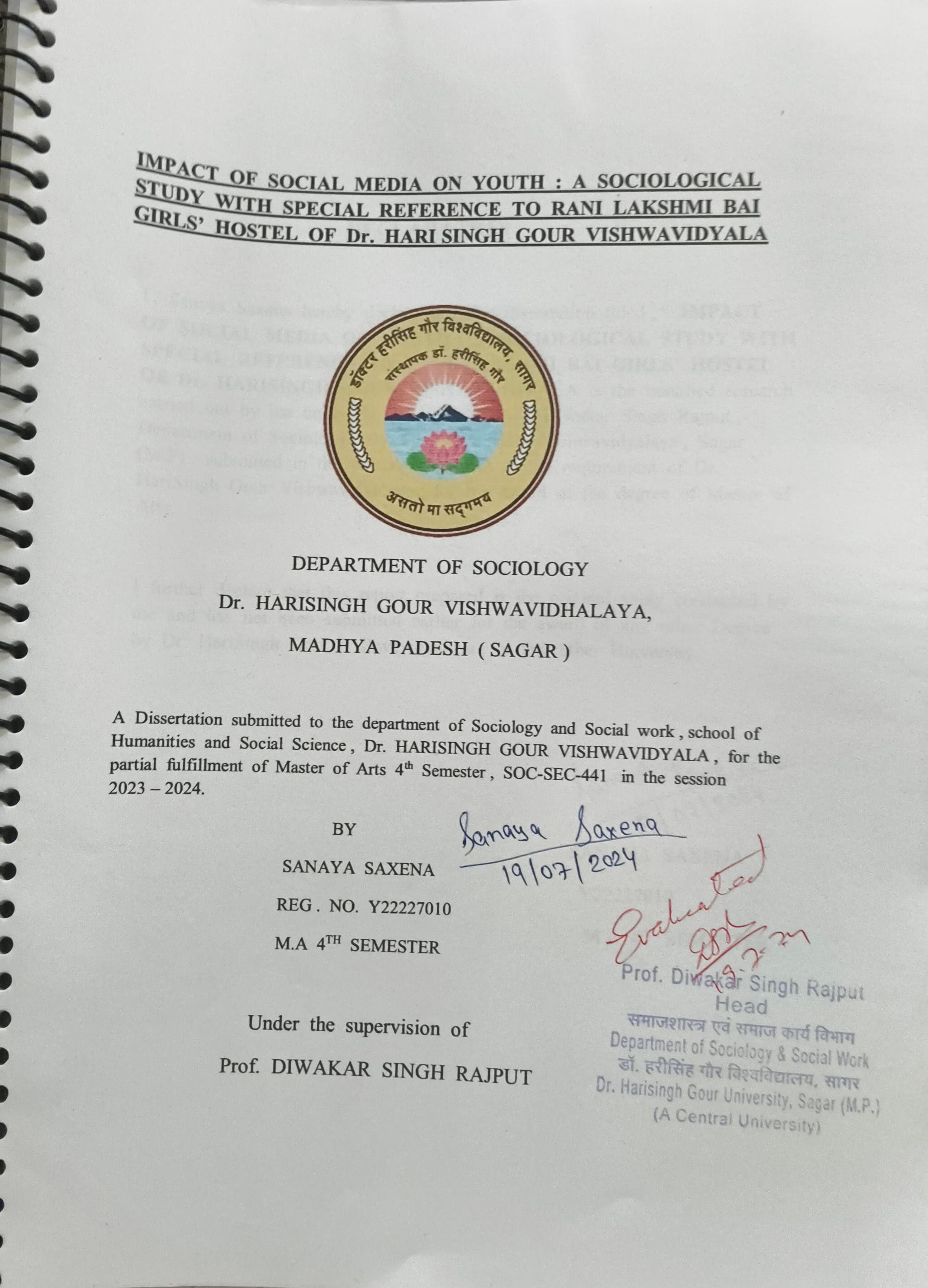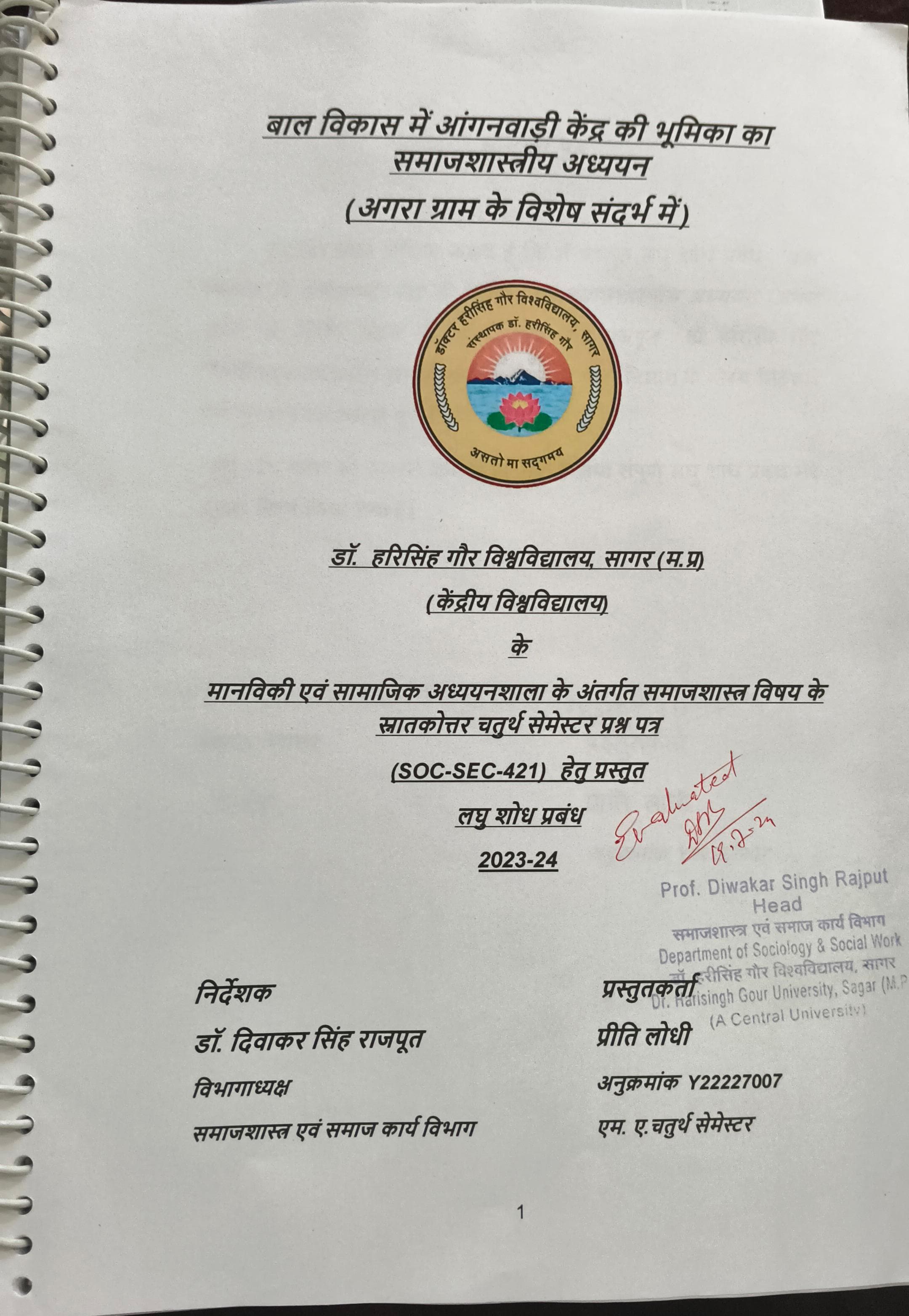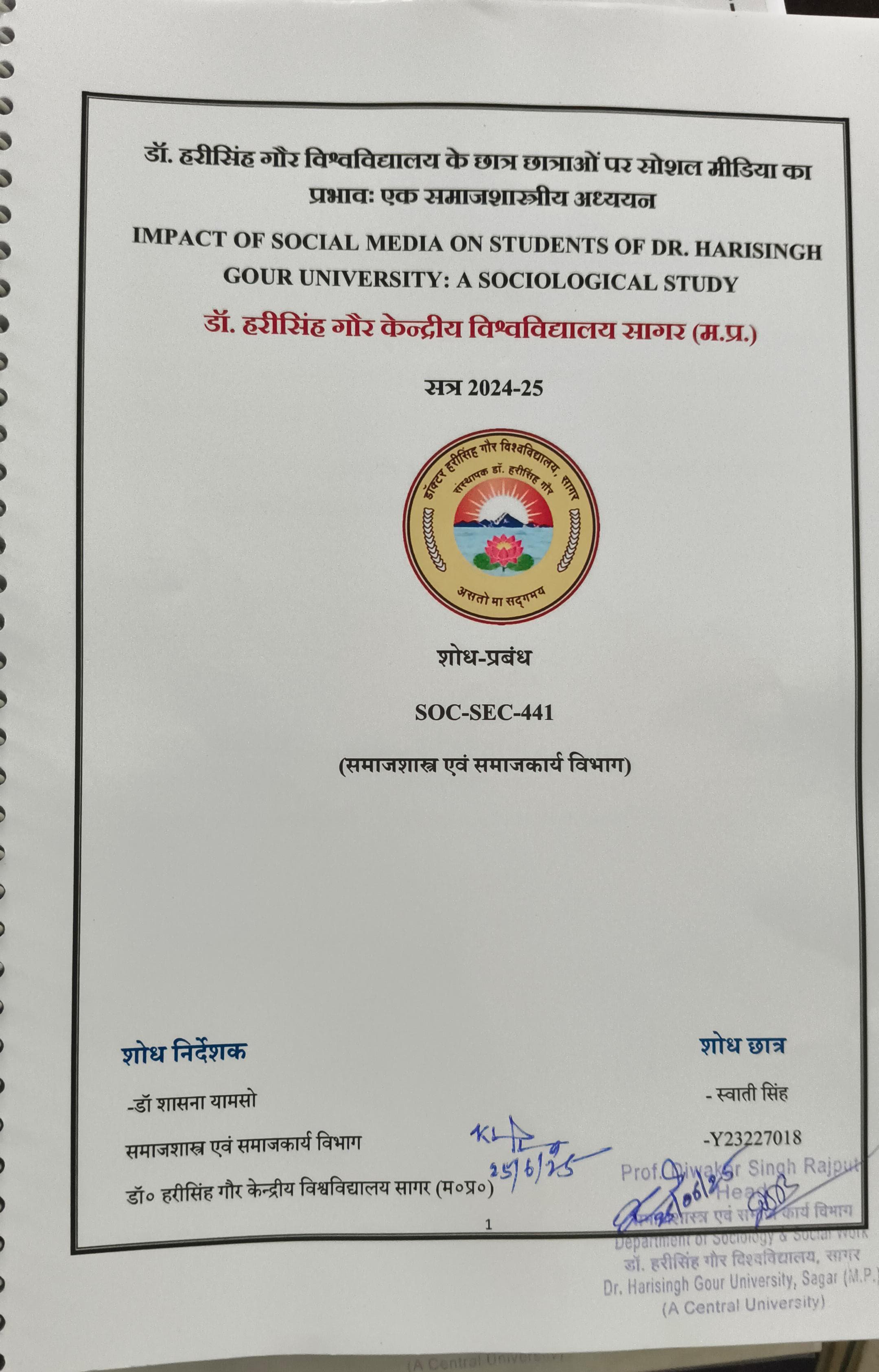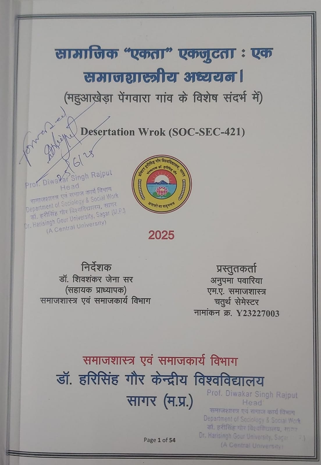| 7 | Akrati Kanojia | MSW | Dr. Harisingh Gour V V Sagar | PH.D. Sociology |