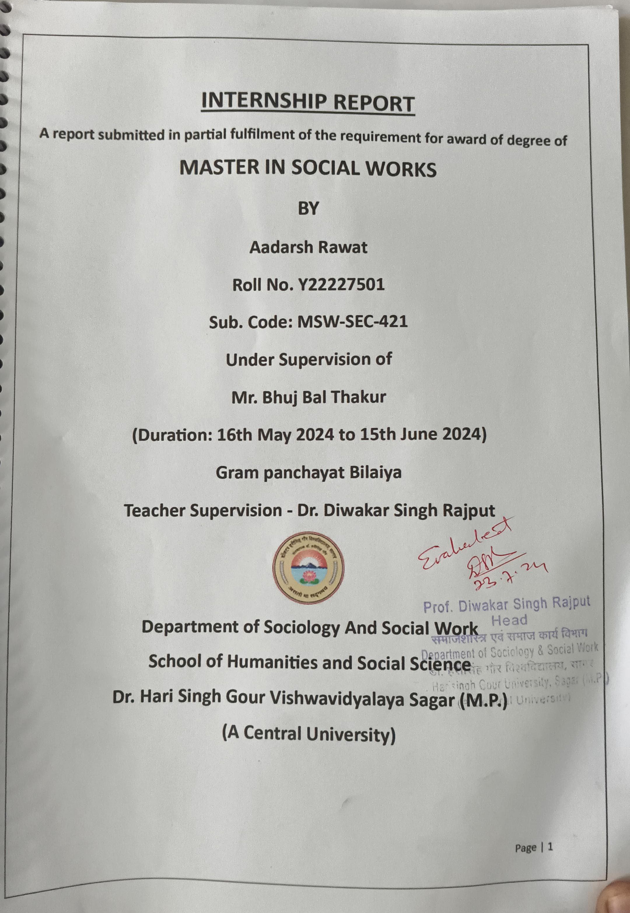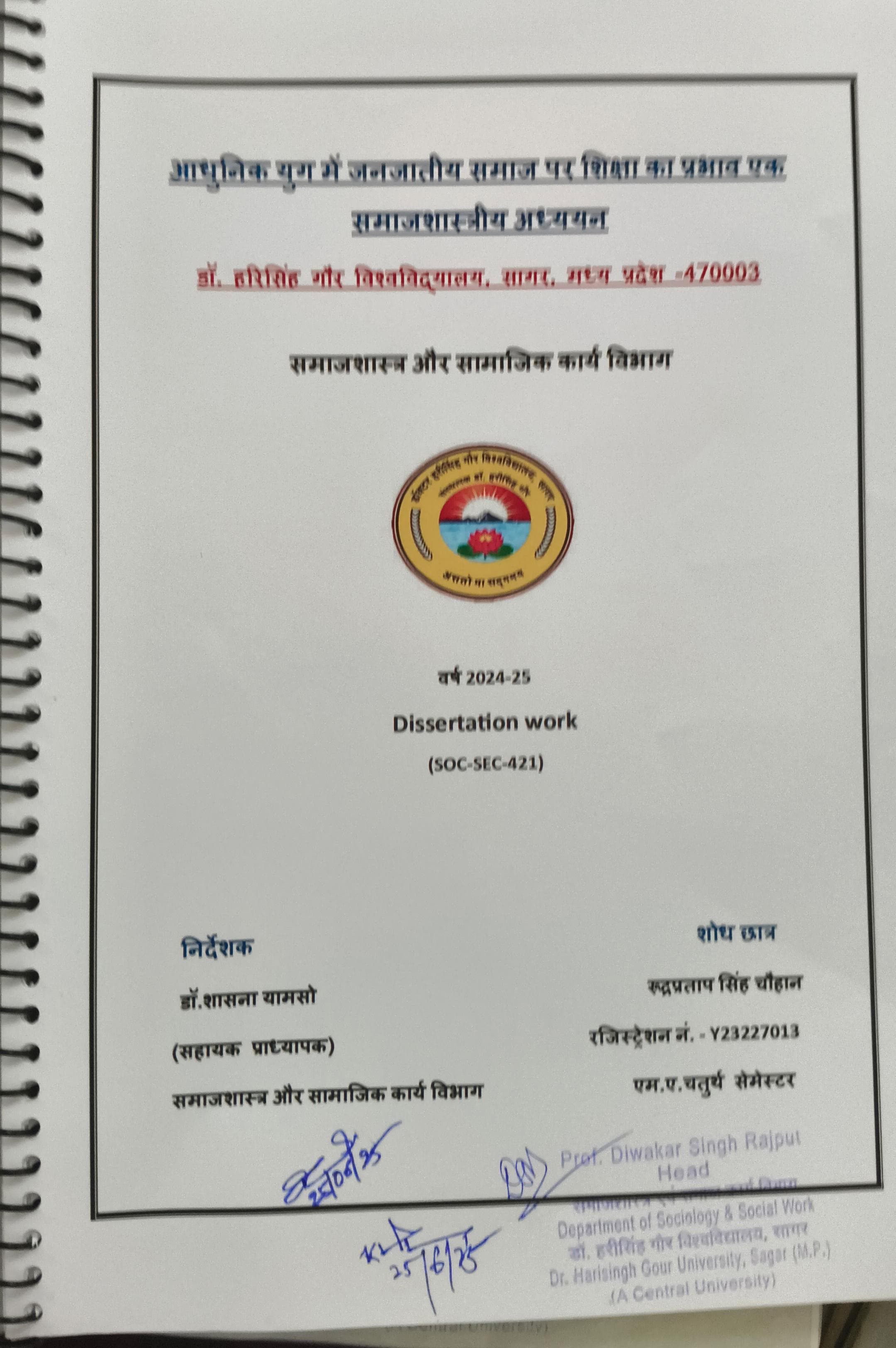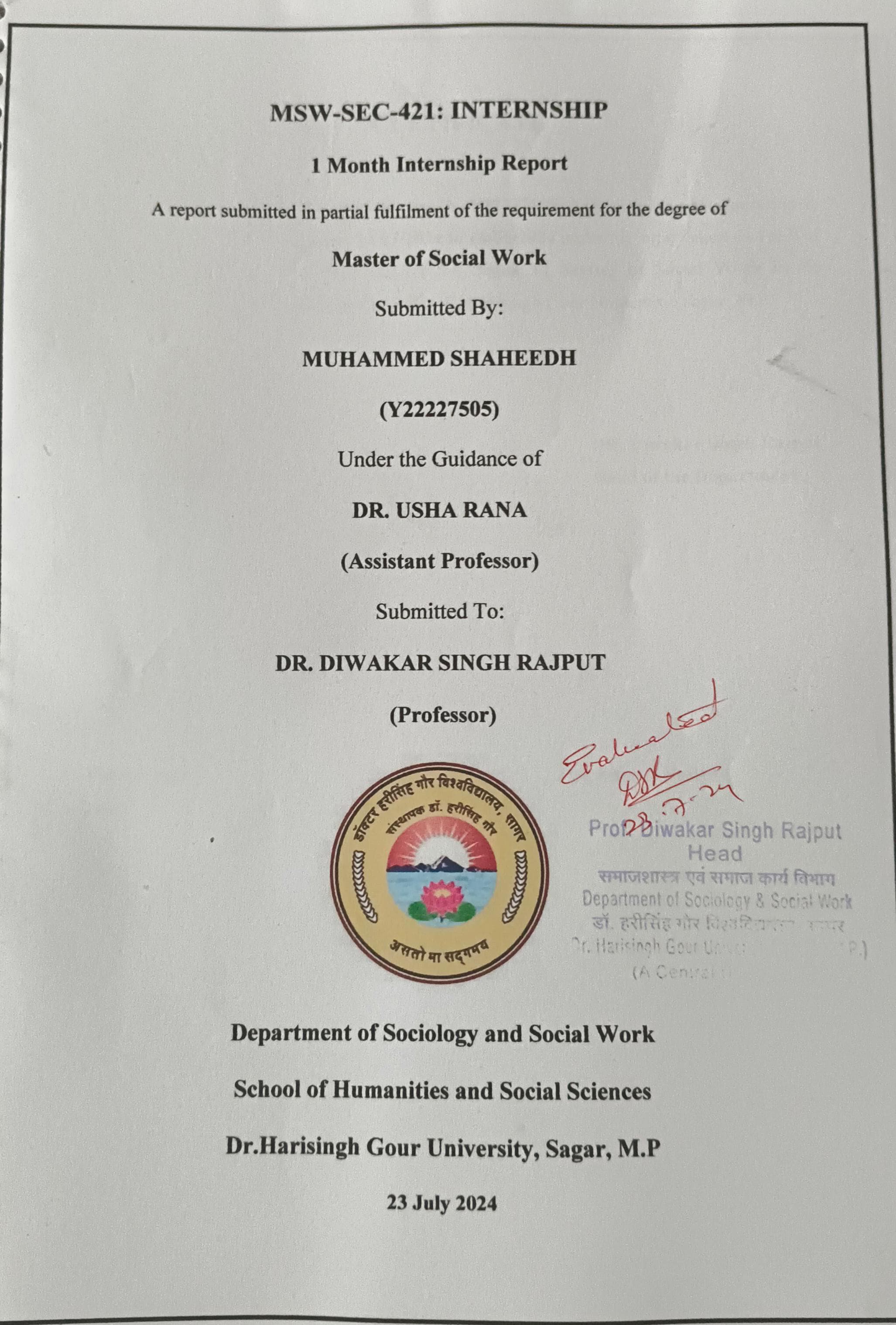 | 9 | Ahfaz Khan | MSW | Dr. Harisingh Gour V V Sagar | PH.D. Sociology |