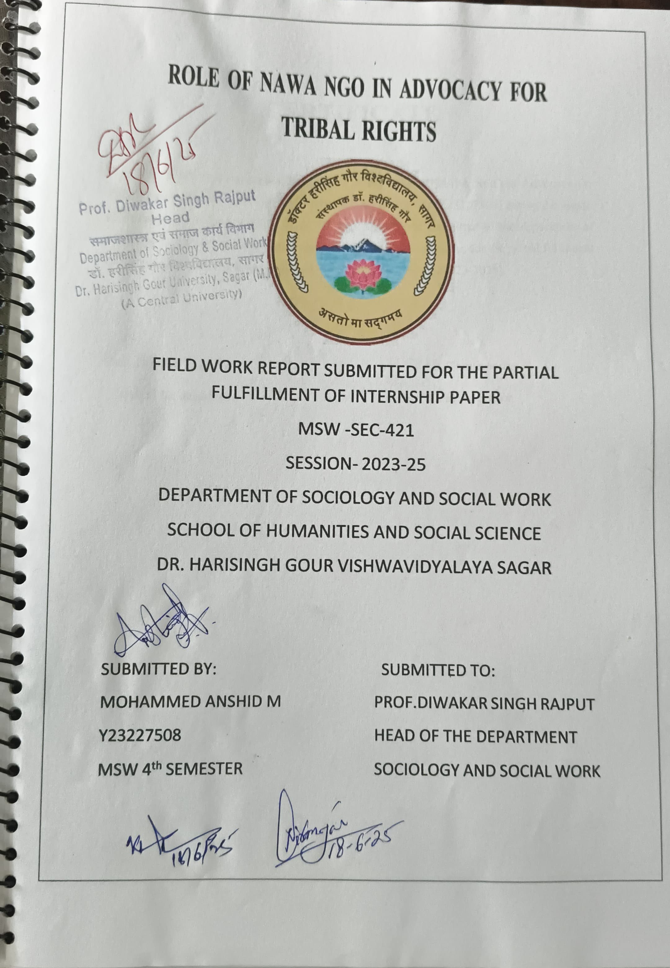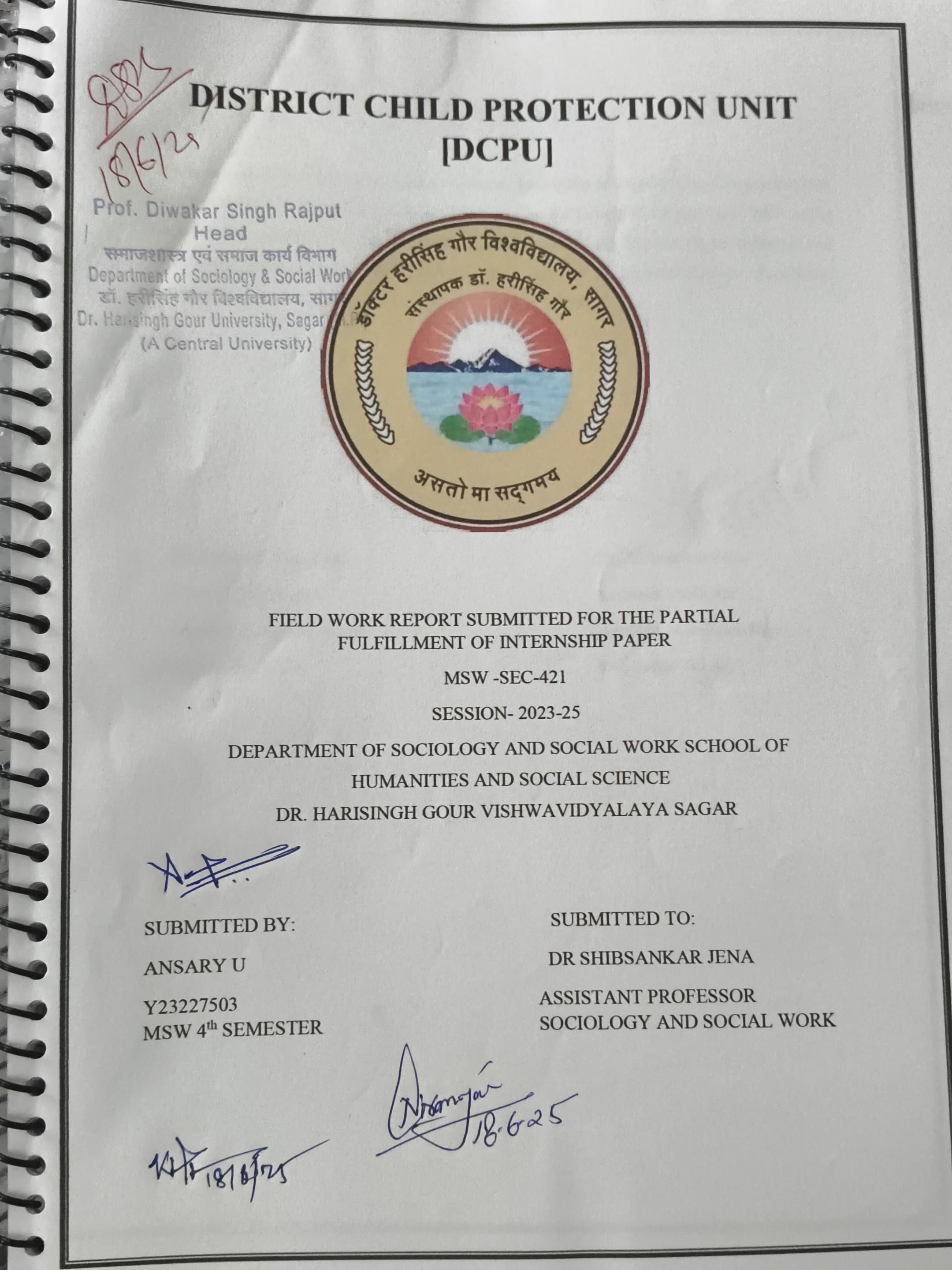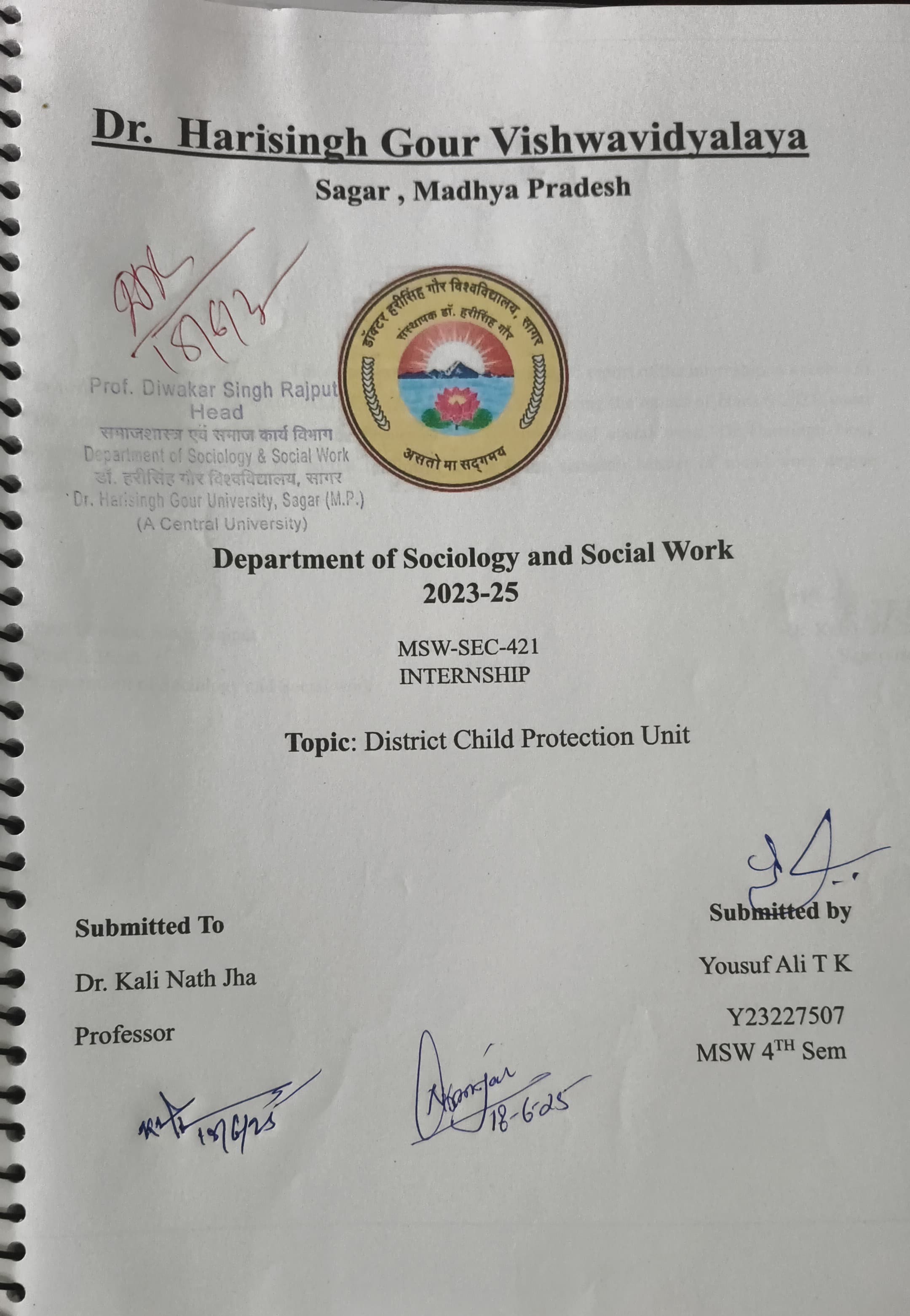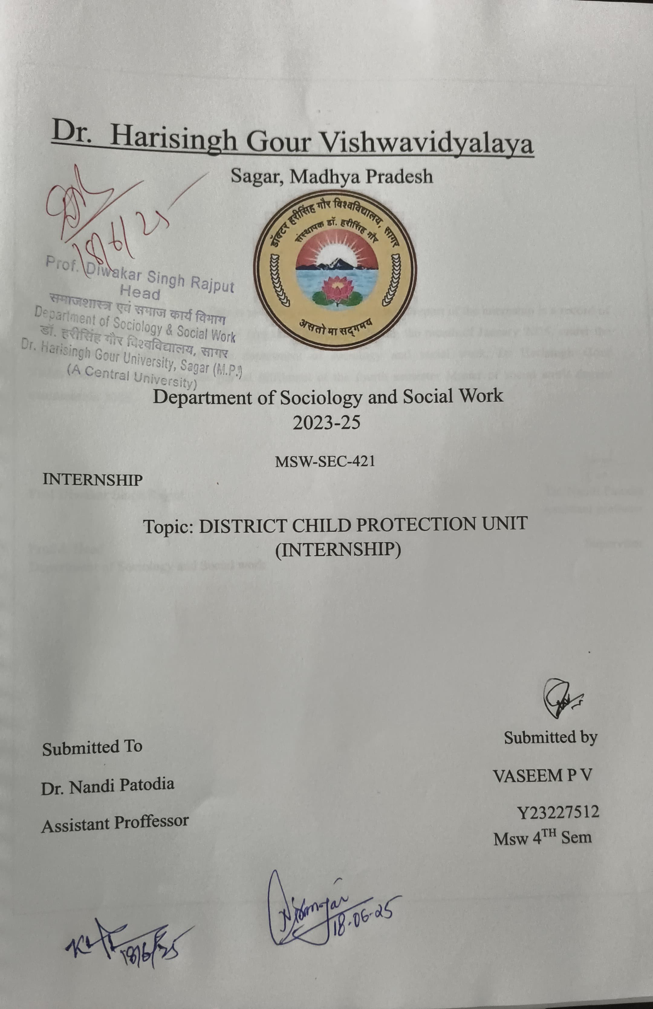 | 9 | Ahfaz Khan | MSW | Dr. Harisingh Gour V V Sagar | PH.D. Sociology |