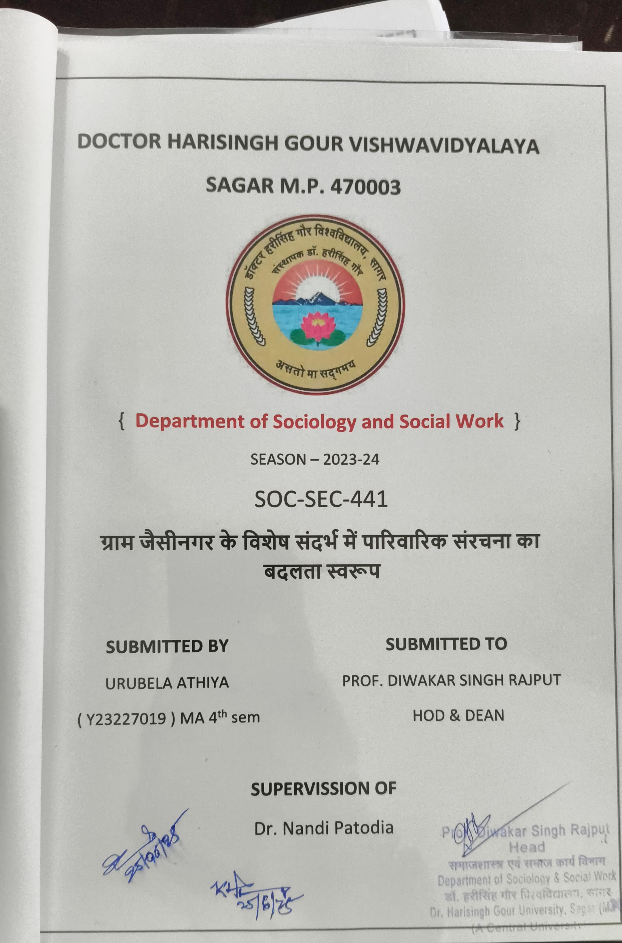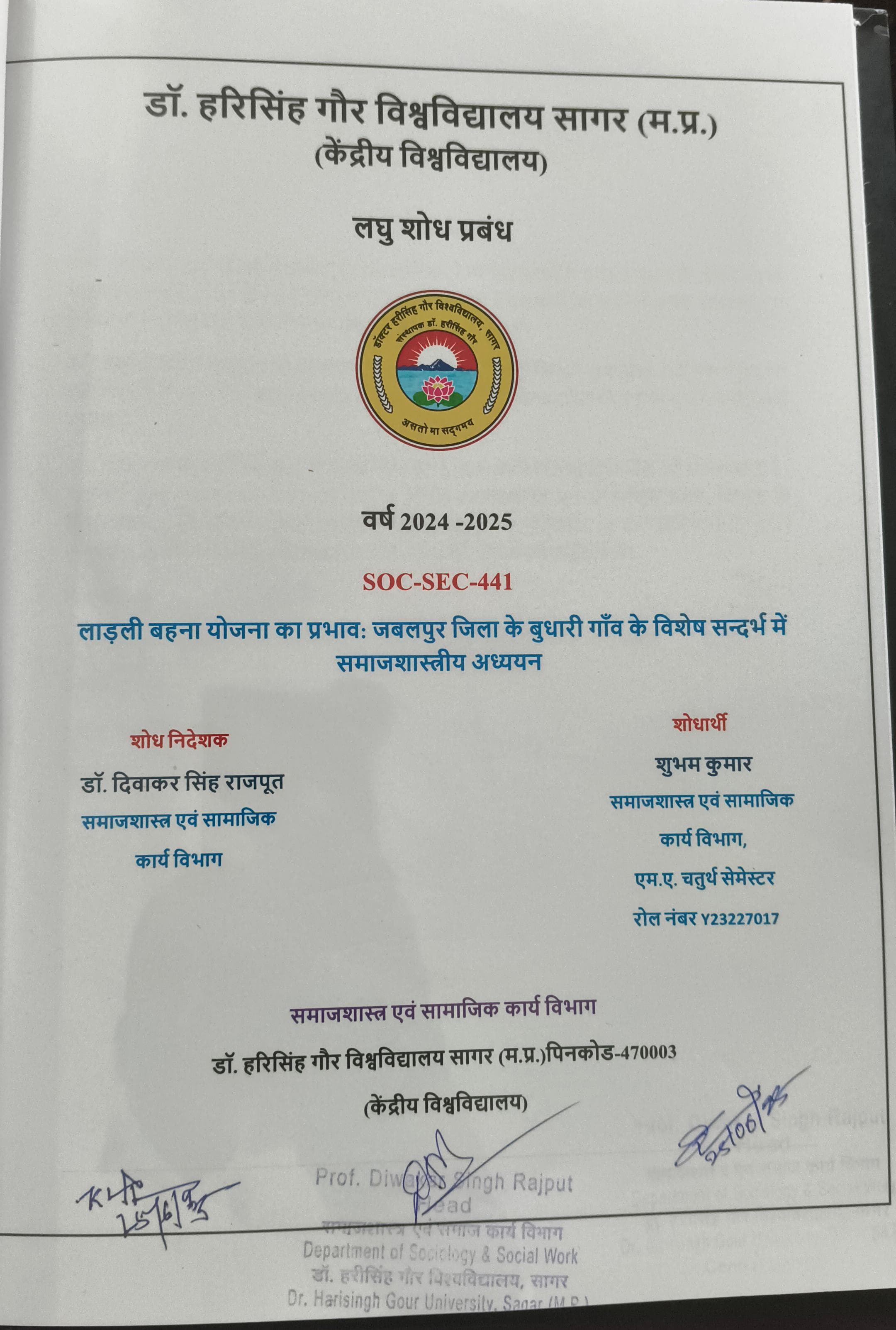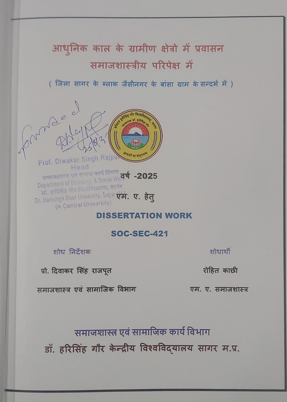 | 6 | Siddharth Abidra | MSW | Dr. Harisingh Gour V V Sagar | PH.D. Sociology |