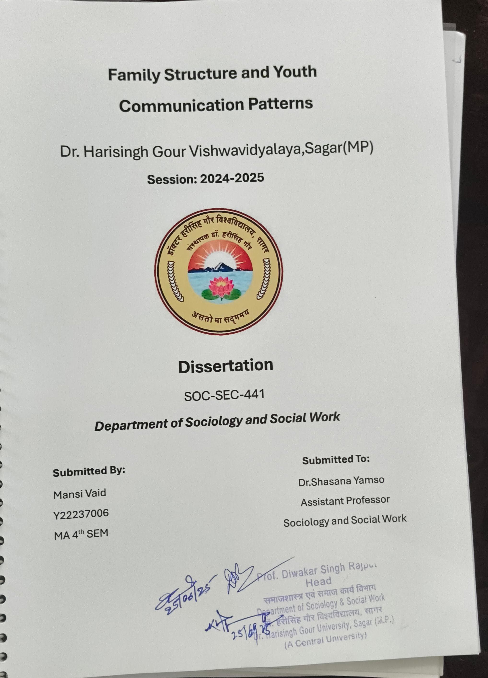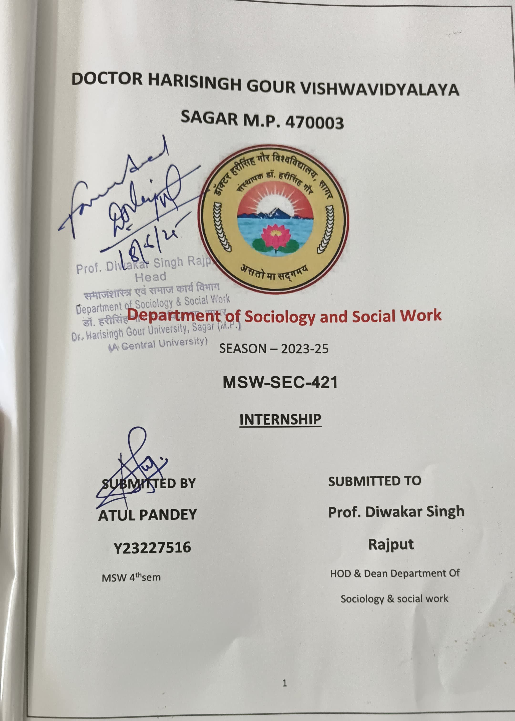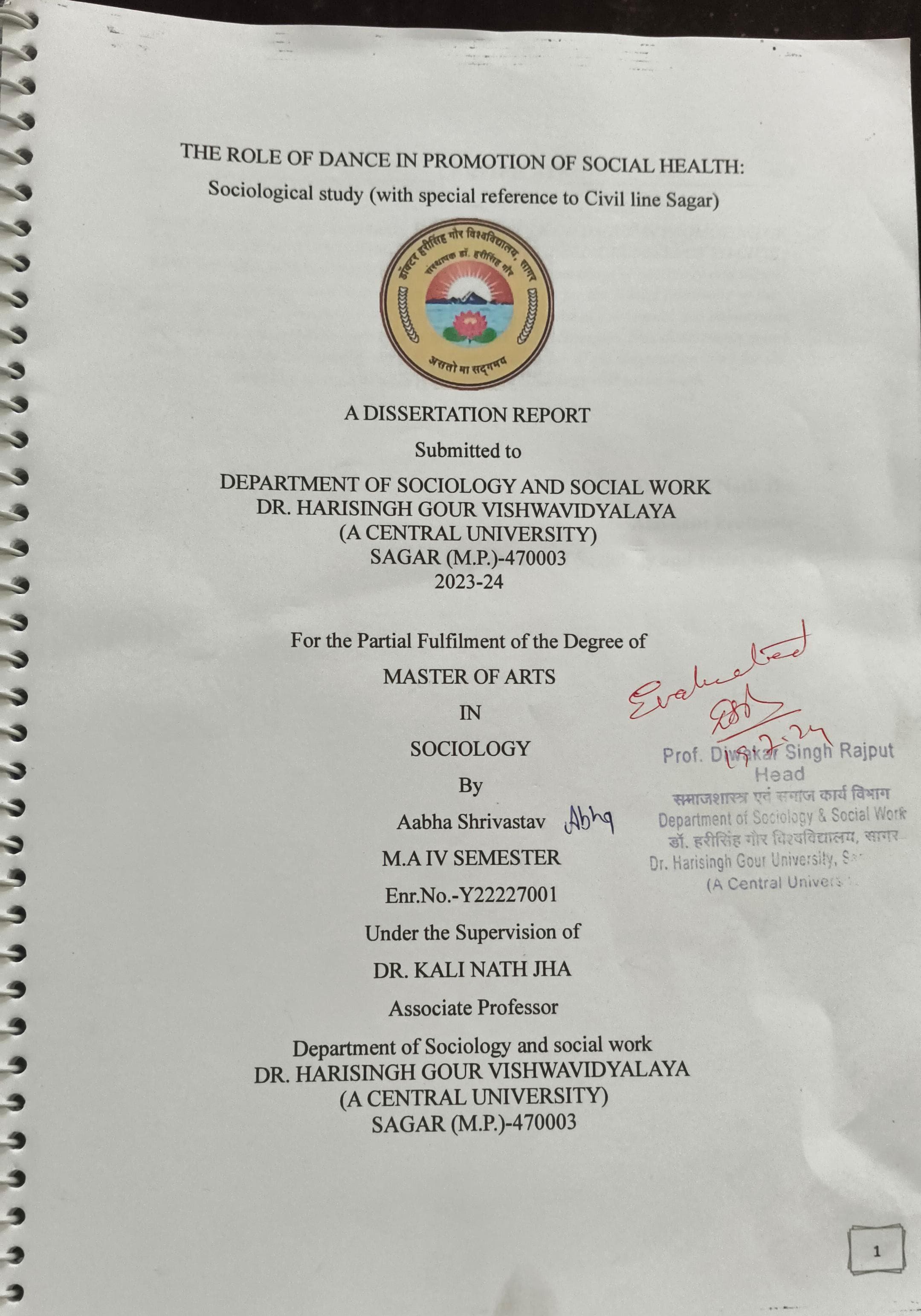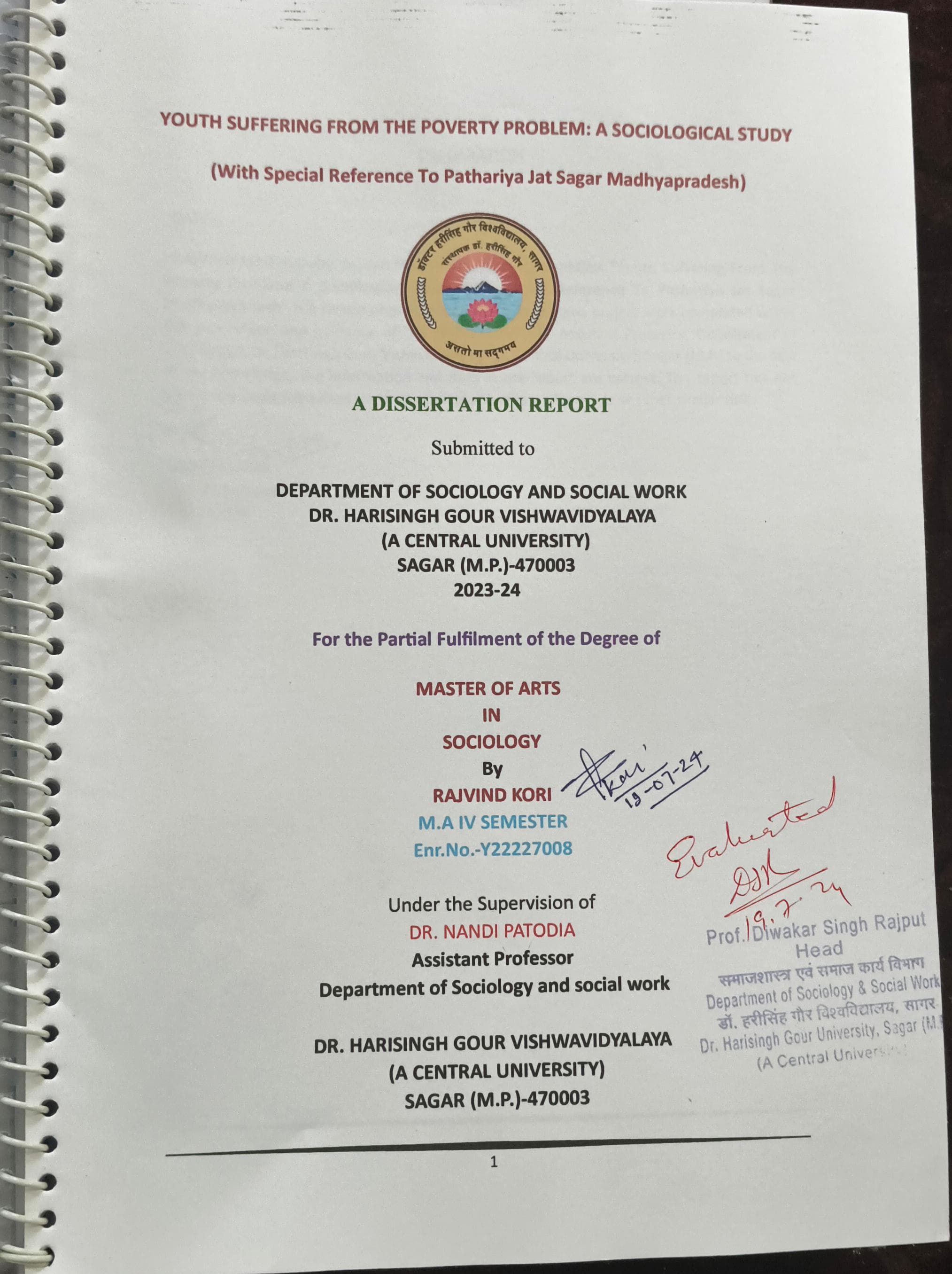 | 6 | Siddharth Abidra | MSW | Dr. Harisingh Gour V V Sagar | PH.D. Sociology |