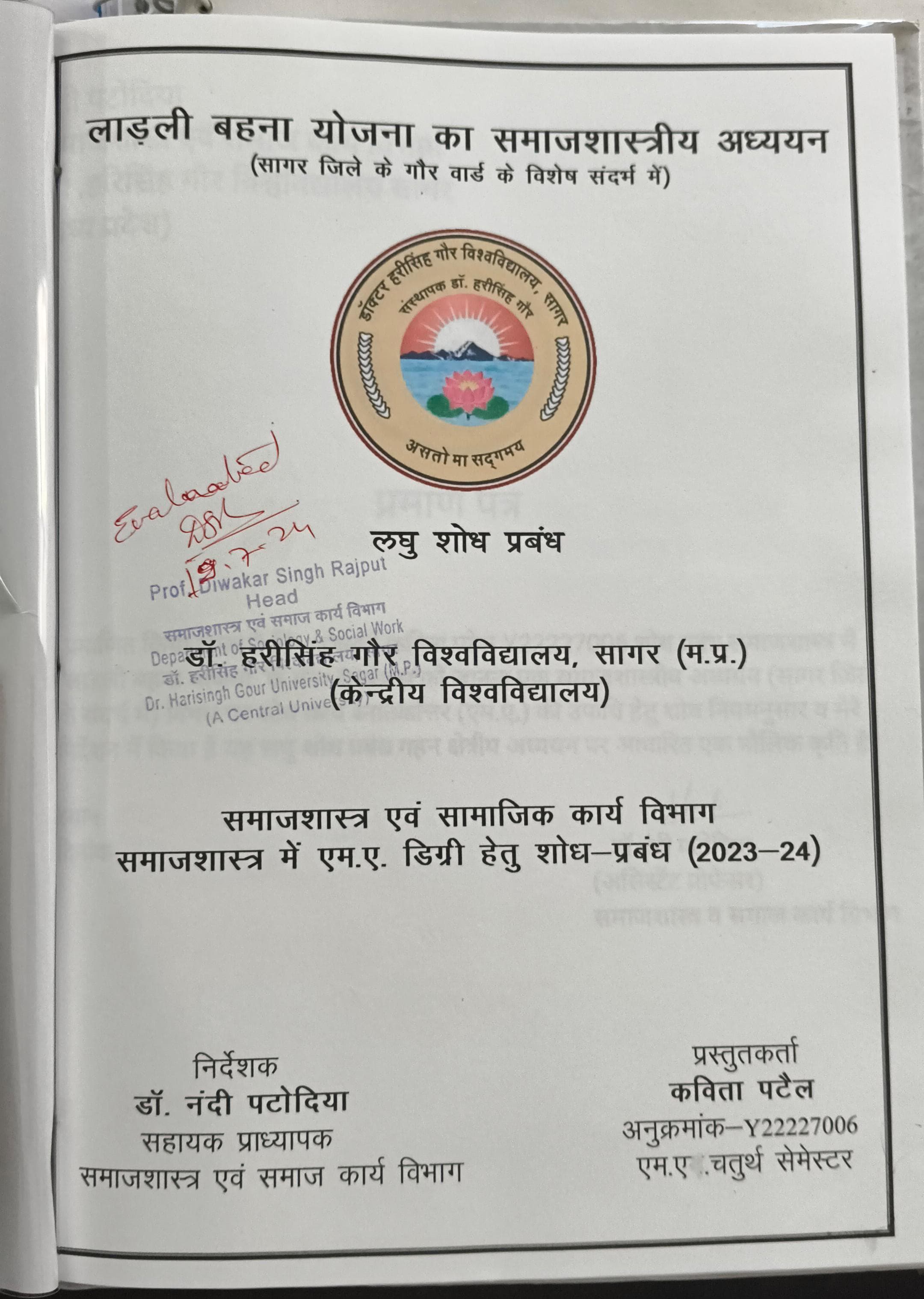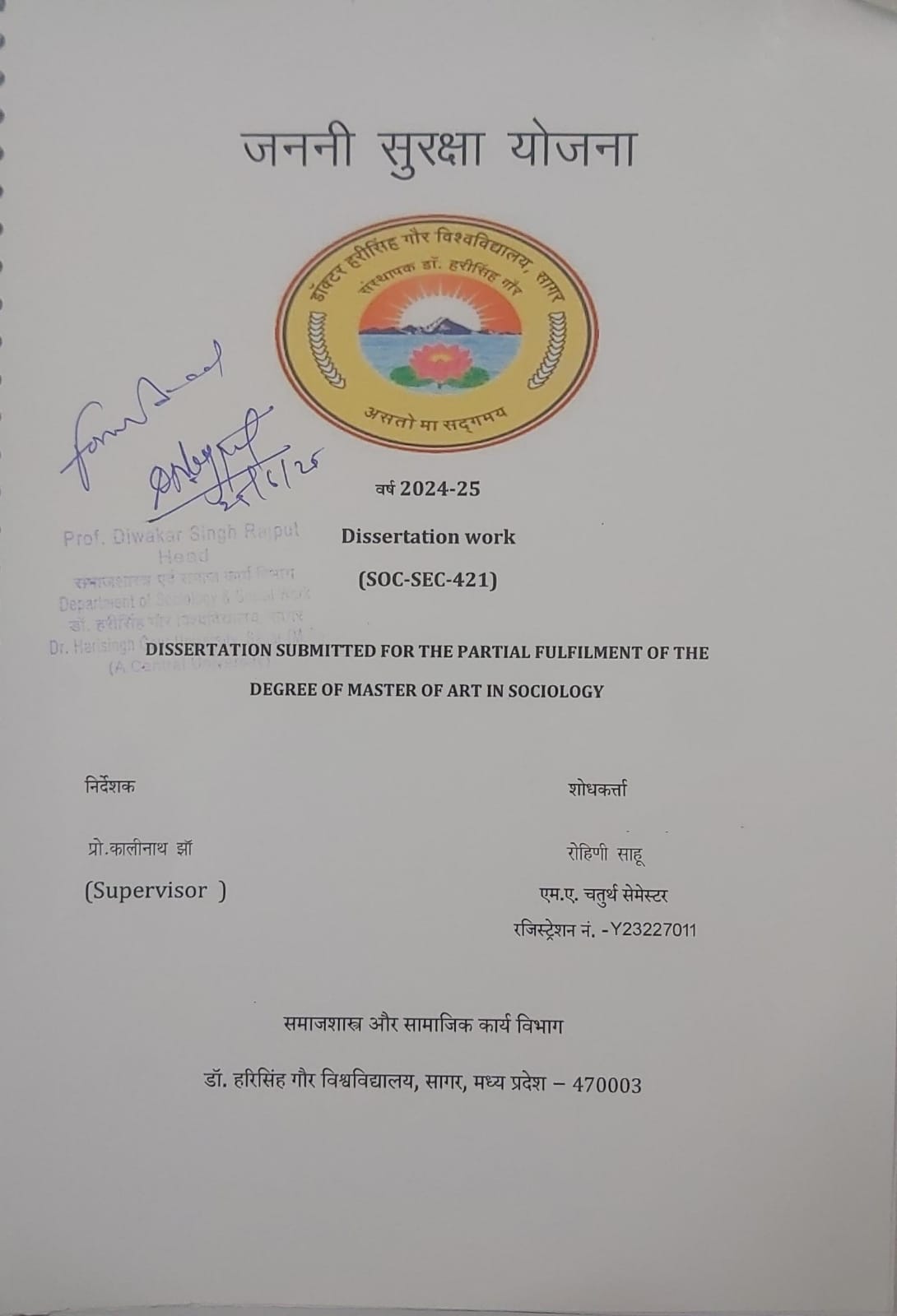 | 19 | LUCKY JADIA | MSW | Dr. Harisingh Gour V V Sagar | PH.D. Sociology |