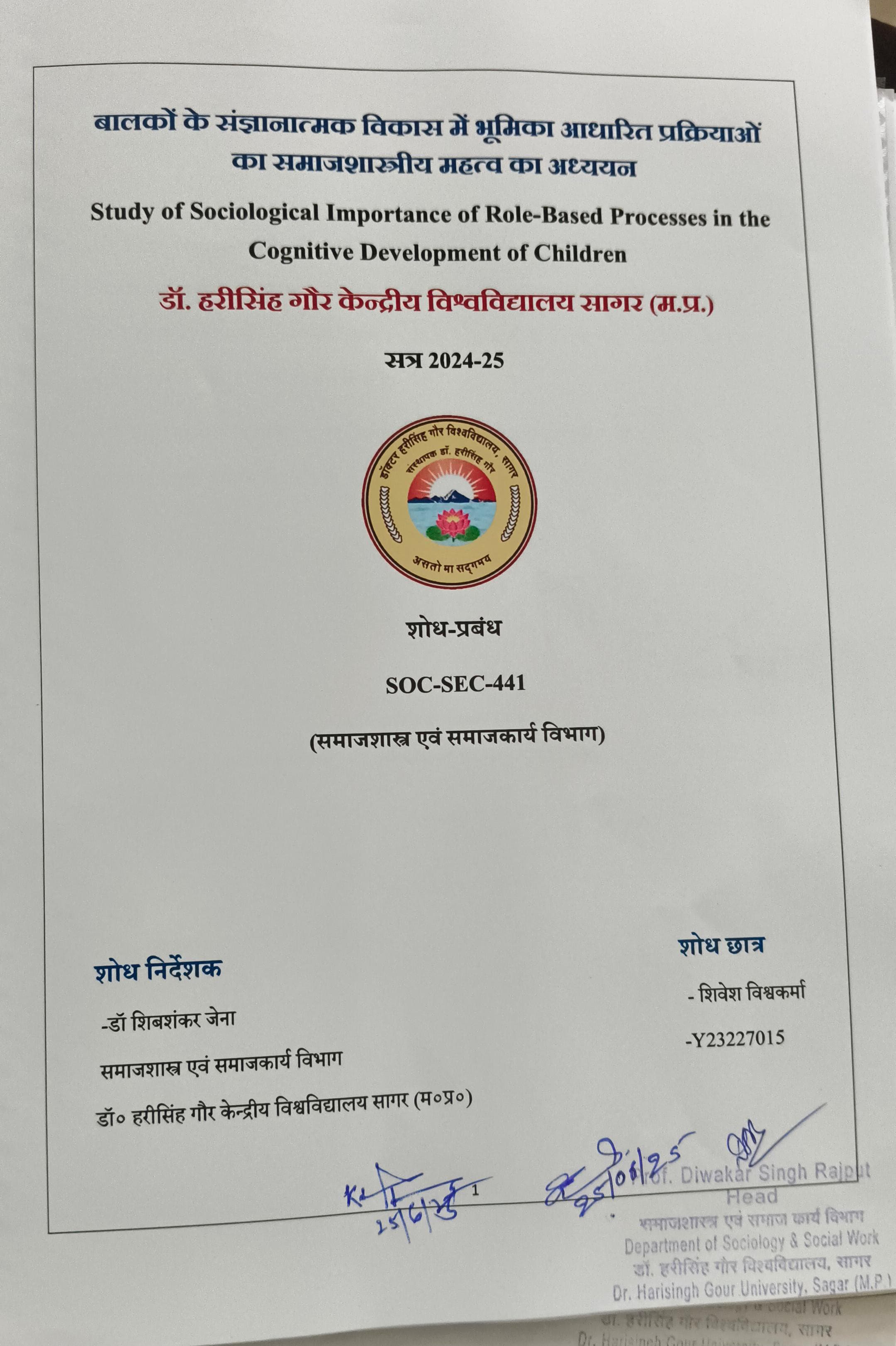 | 1 | Ajay Kumar Vishwawkarma | MA Sociology | Dr. Harisingh Gour V V Sagar | PH.D. Sociology |