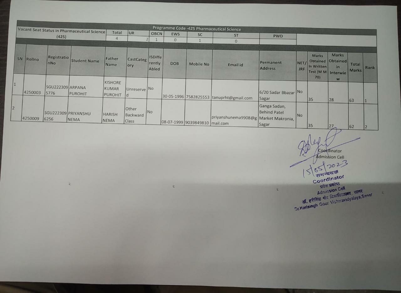 Ph.D. Result 2022- Pharmaceutical Sciences