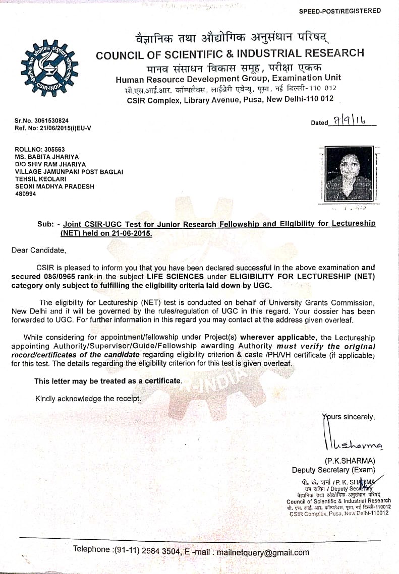 | 1 | Neeti Kushwaha | 2016-2018 | M.Sc. Biotechnology | CDRI, Lucknow | Ph.D. |