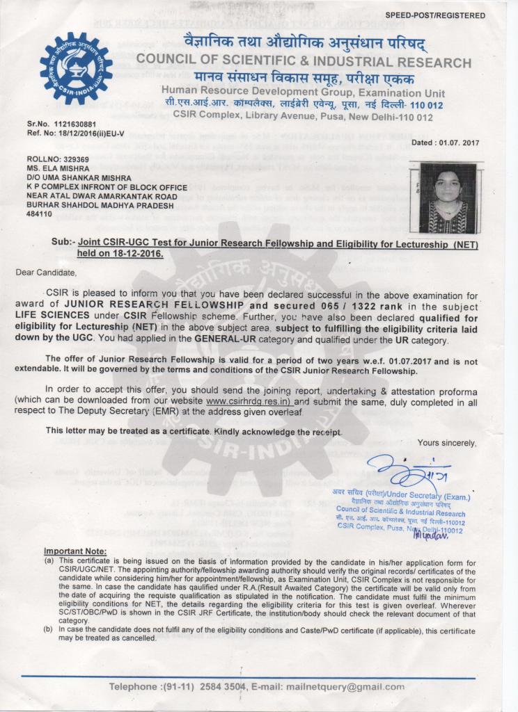 | 6 | Ela Mishra | 2014-2016 | M.Sc. Biotechnology | BHU, Varanashi | Ph.D. |