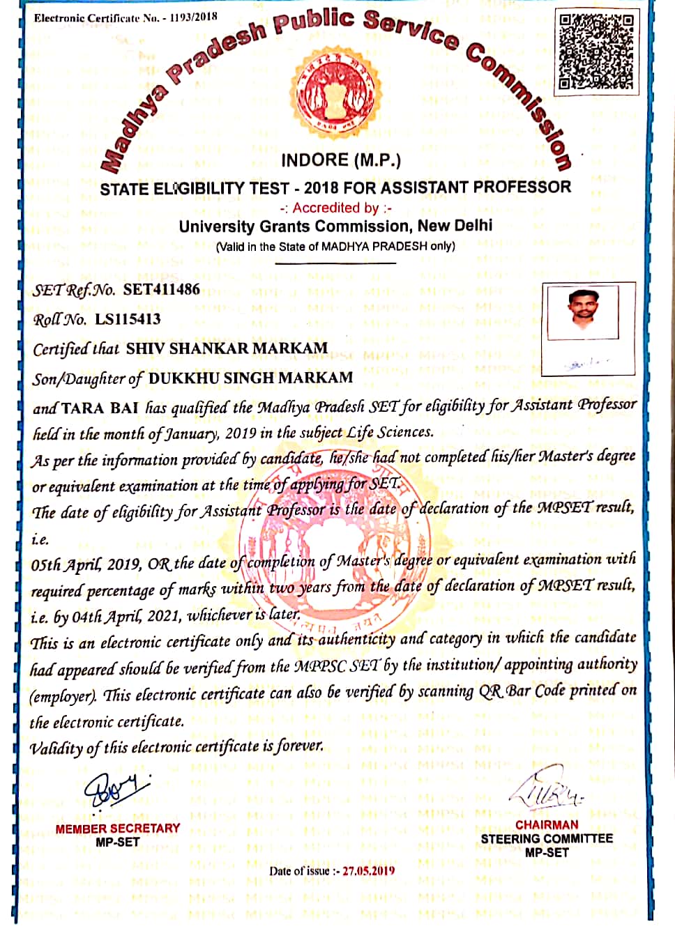 | M.Sc. Botany | 2205 | Siddharth Ahirwar | VIEW |